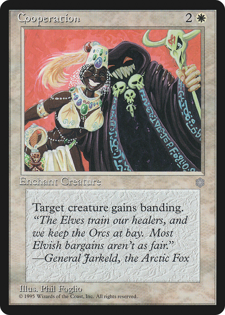 Enchanted creature has banding. (Any creatures with banding, and up to one without, can attack in a band. Bands are blocked as a group. If any creatures with banding a player controls are blocking or being blocked by a creature, that player divides that creature's combat damage, not its controller, among any of the creatures it's being blocked by or is blocking.)