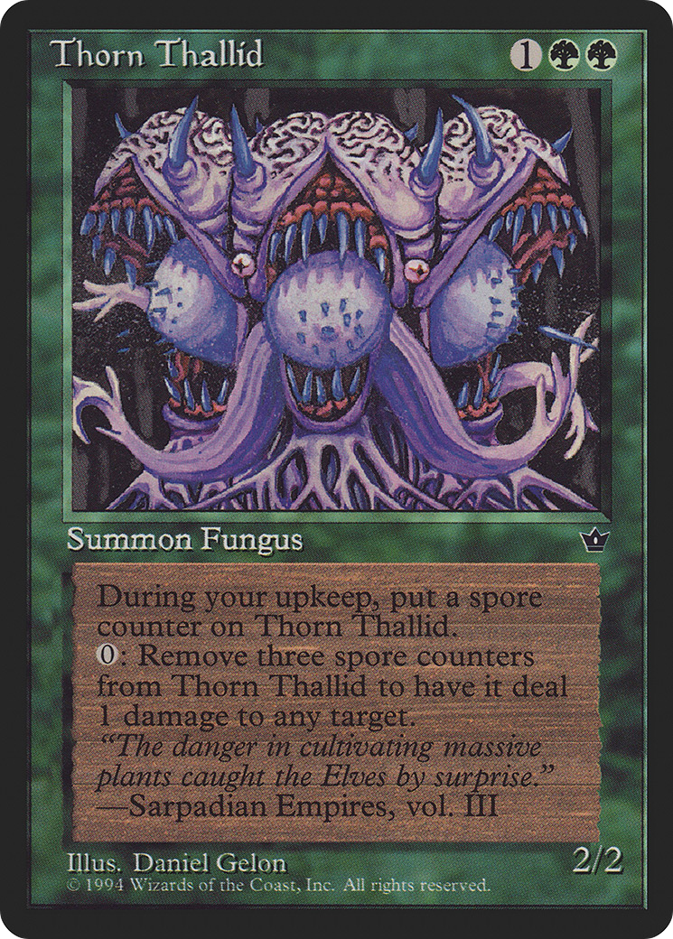 At the beginning of your upkeep, put a spore counter on Thorn Thallid.