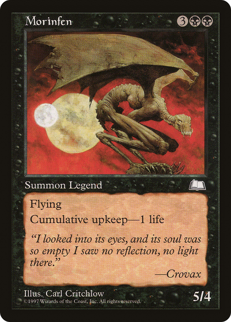 Cumulative upkeep—Pay 1 life. (At the beginning of your upkeep, put an age counter on this permanent, then sacrifice it unless you pay its upkeep cost for each age counter on it.)