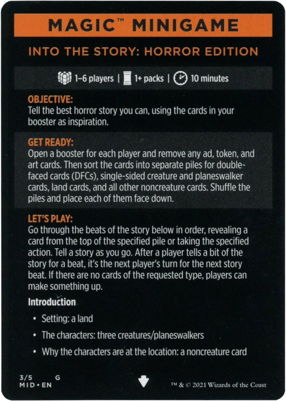 Tell the best horror story you can, using the cards in your booster as inspiration.