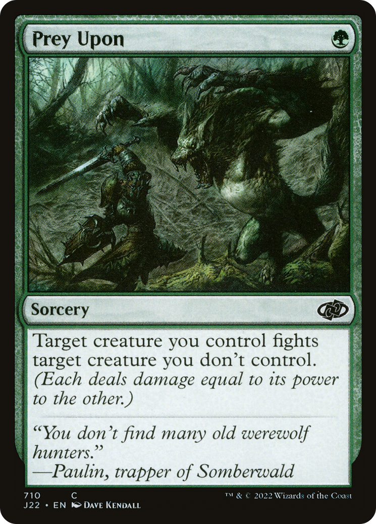 Target creature you control fights target creature you don't control. (Each deals damage equal to its power to the other.)