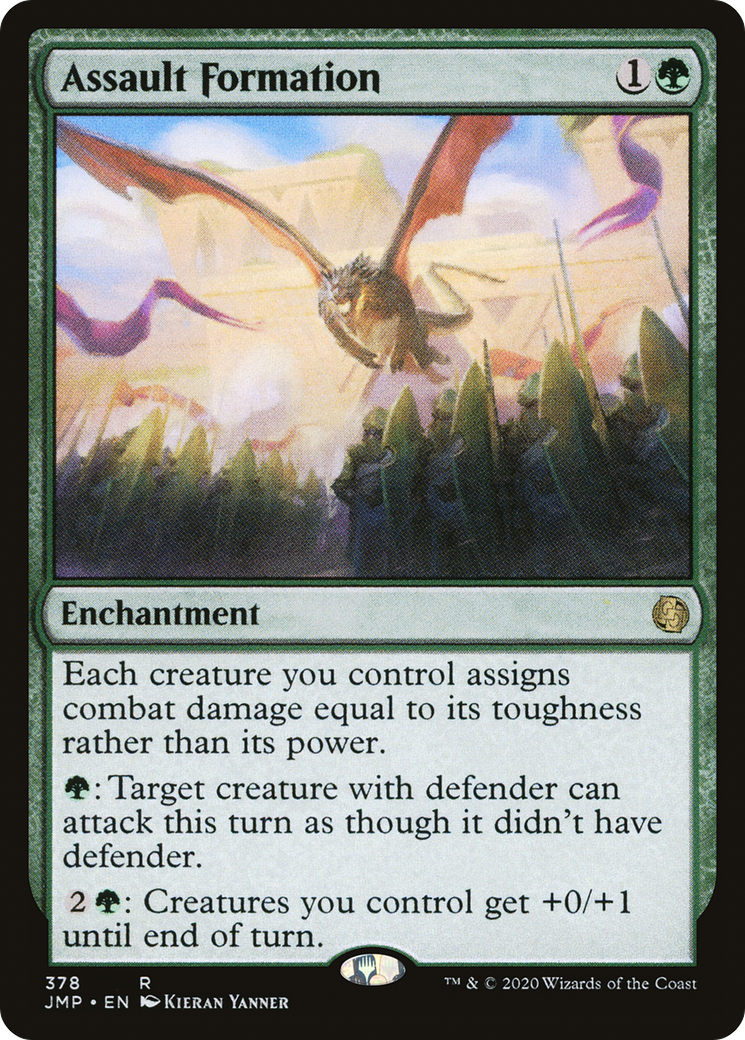 {G}: Target creature with defender can attack this turn as though it didn't have defender.