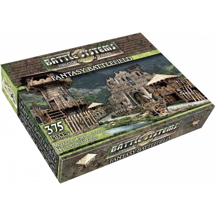 This box contains all the terrain you need for a complete gaming table representing a war-torn battlefield, suitable for many 28-35mm fantasy and historical games. You can tightly pack the terrain into a small skirmish board or spread it out over a larger table. Many of the pieces are modular and can be assembled in any combination you choose for a different set-up every time. The roofs are removable and the buildings have fully detailed interiors.