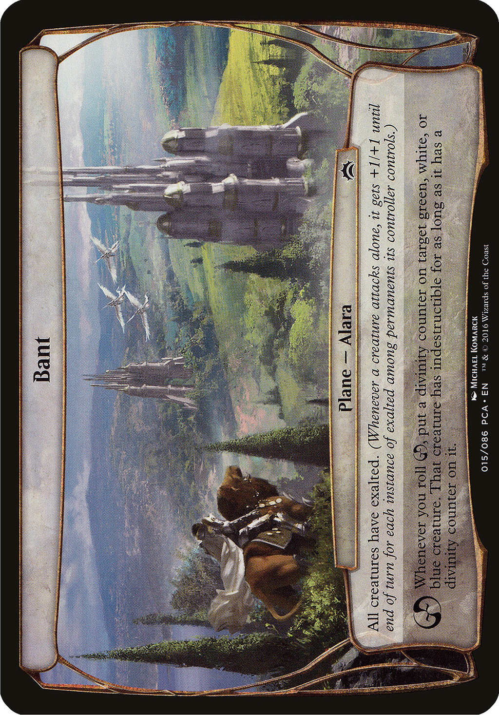 Whenever you roll {CHAOS}, put a divinity counter on target green, white, or blue creature. That creature has indestructible for as long as it has a divinity counter on it.