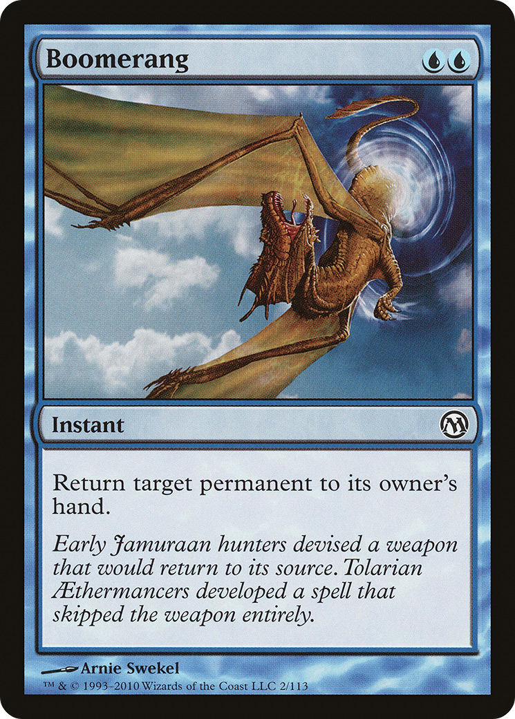 Early Jamuraan hunters devised a weapon that would return to its source. Tolarian Æthermancers developed a spell that skipped the weapon entirely.