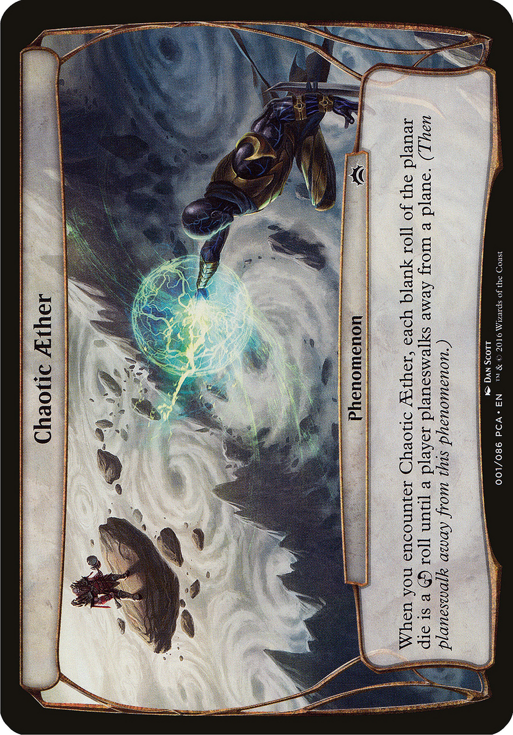 When you encounter Chaotic Aether, each blank roll of the planar die is a CHAOS roll until a player planeswalks away from a plane. (Then planeswalk away from this phenomenon.)