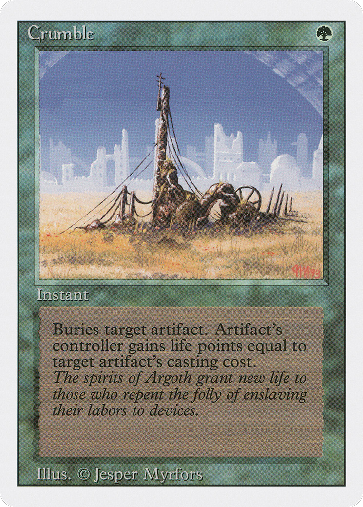 Destroy target artifact. It can't be regenerated. That artifact's controller gains life equal to its converted mana cost.