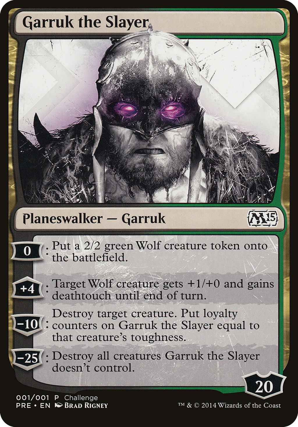 −10: Destroy target creature. Put loyalty counters on Garruk the Slayer equal to that creature's toughness.