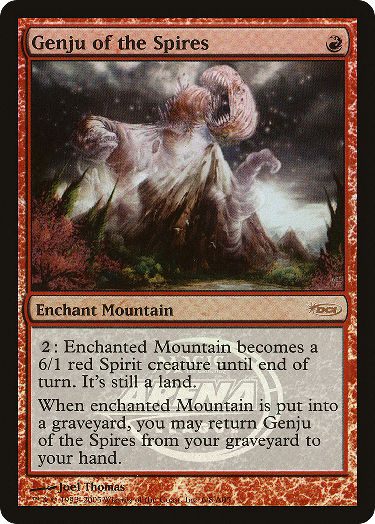When enchanted Mountain is put into a graveyard, you may return Genju of the Spires from your graveyard to your hand.