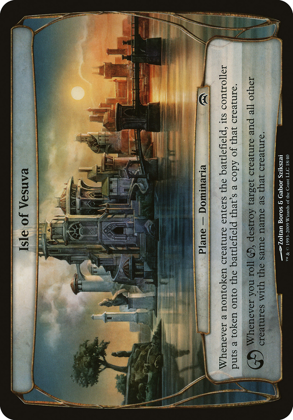 Whenever you roll {CHAOS}, destroy target creature and all other creatures with the same name as that creature.