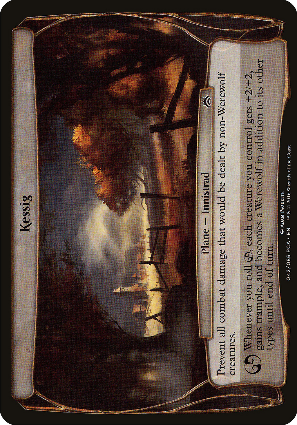Whenever you roll {CHAOS}, each creature you control gets +2/+2, gains trample, and becomes a Werewolf in addition to its other types until end of turn.