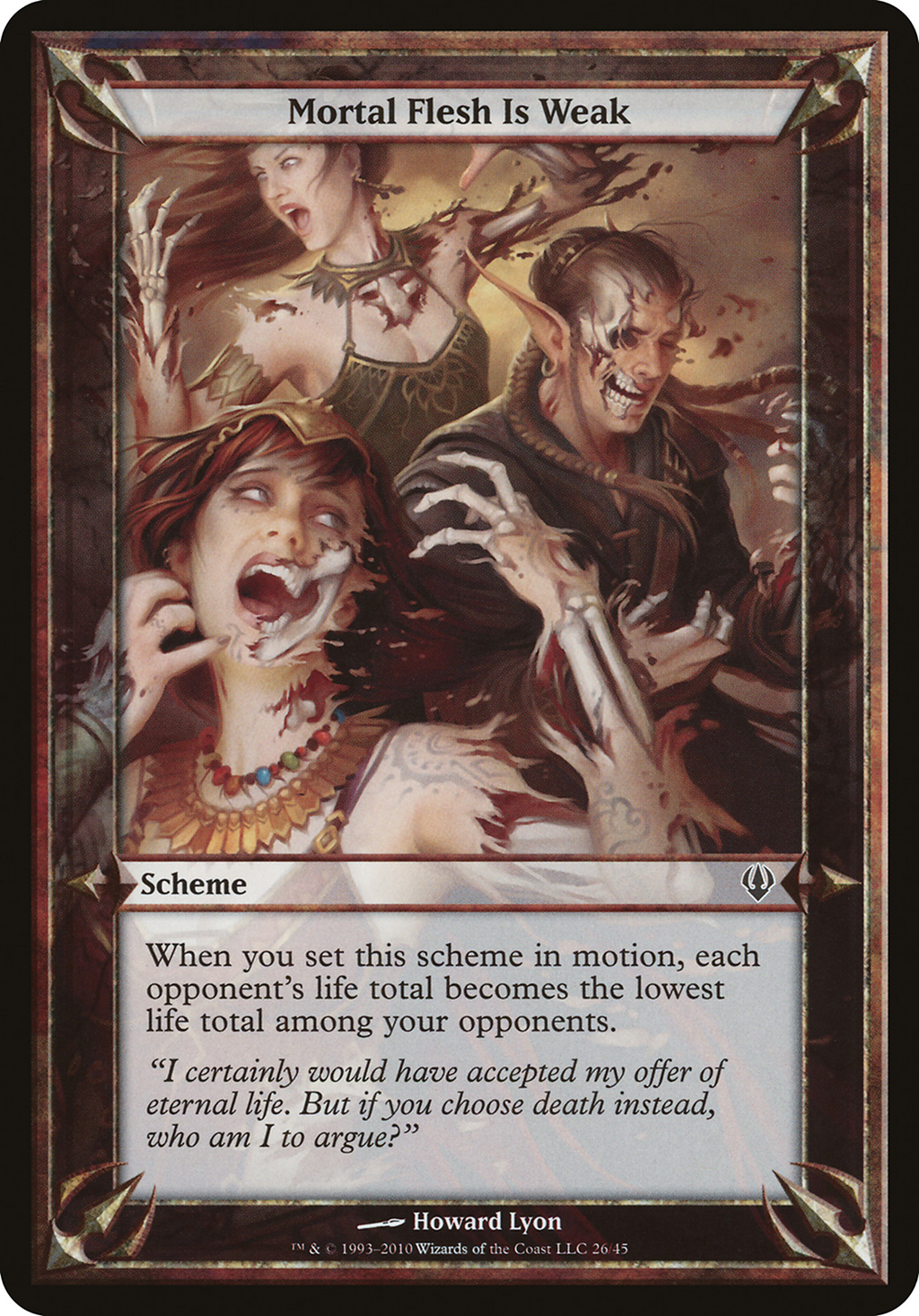 When you set this scheme in motion, each opponent's life total becomes the lowest life total among your opponents.