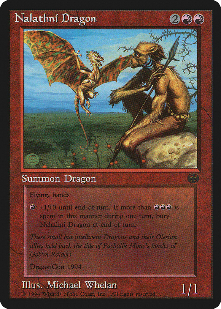 {R}: Nalathni Dragon gets +1/+0 until end of turn. If this ability has been activated four or more times this turn, sacrifice Nalathni Dragon at the beginning of the next end step.
