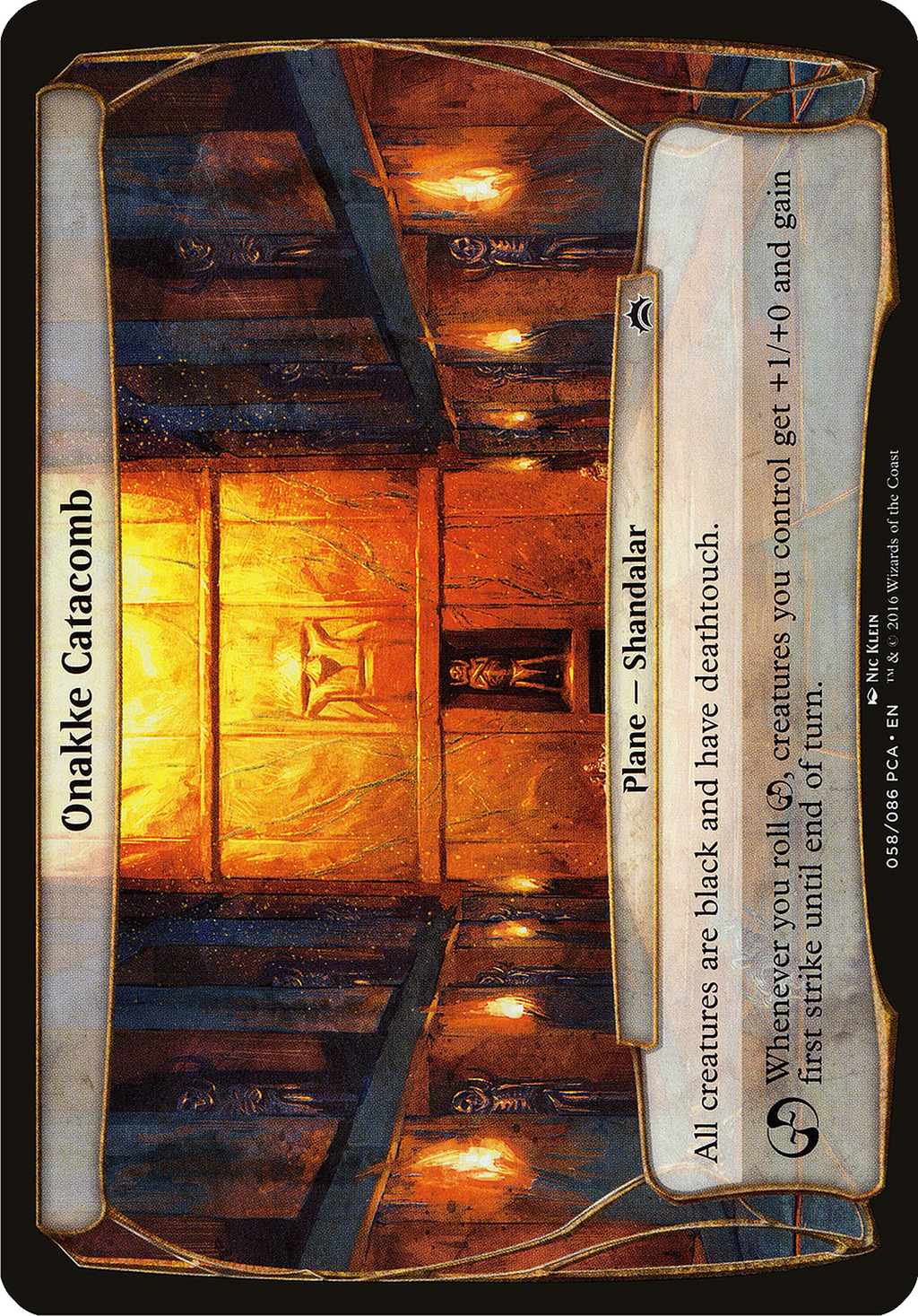 Whenever you roll {CHAOS}, creatures you control get +1/+0 and gain first strike until end of turn.