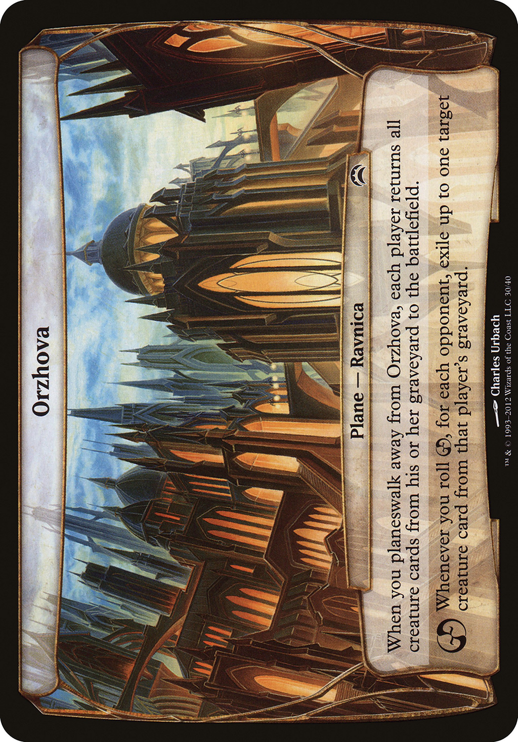 When you planeswalk away from Orzhova, each player returns all creature cards from their graveyard to the battlefield.