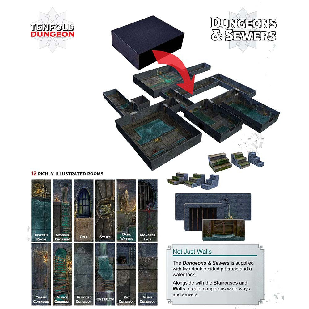 The Dungeons & Sewers is supplied with two double-sided pit-traps and a water-lock. Alongside with the Staircases and Walls, create dangerous waterways and sewers.