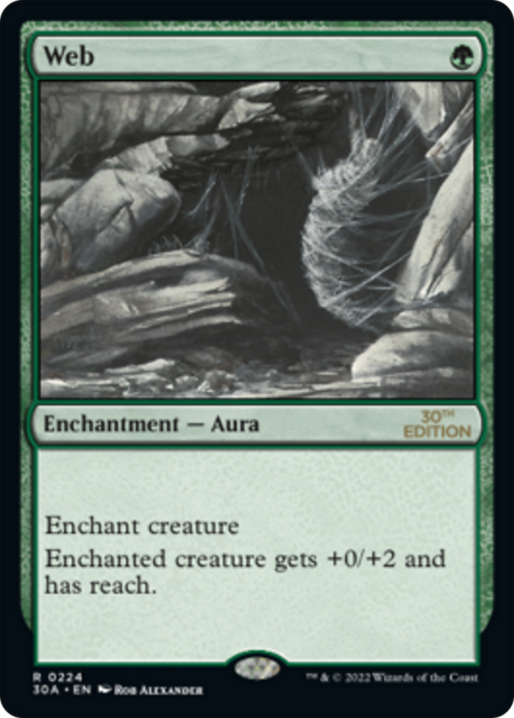 Enchanted creature gets +0/+2 and has reach. (It can block creatures with flying.)