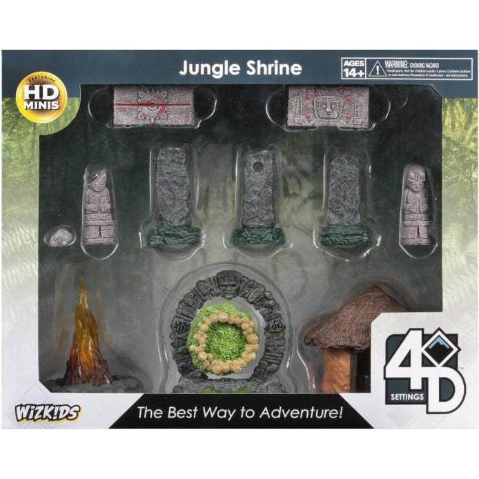 The Jungle Shrine is the first offering from WizKids in the new 4D™ Settings line. These scenes offer more than just pre-painted miniatures for you, they offer exciting new play experiences and storytelling narratives.